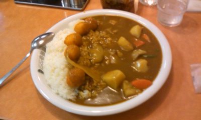 まぁ野菜カレーにウズラフライをトッピングしただけですがw